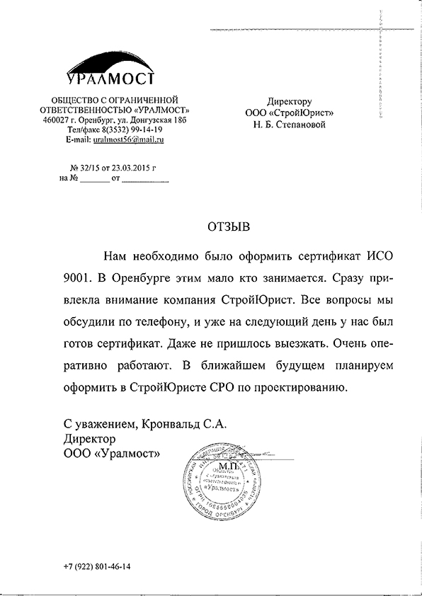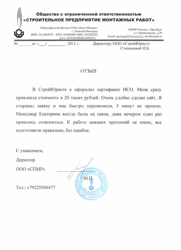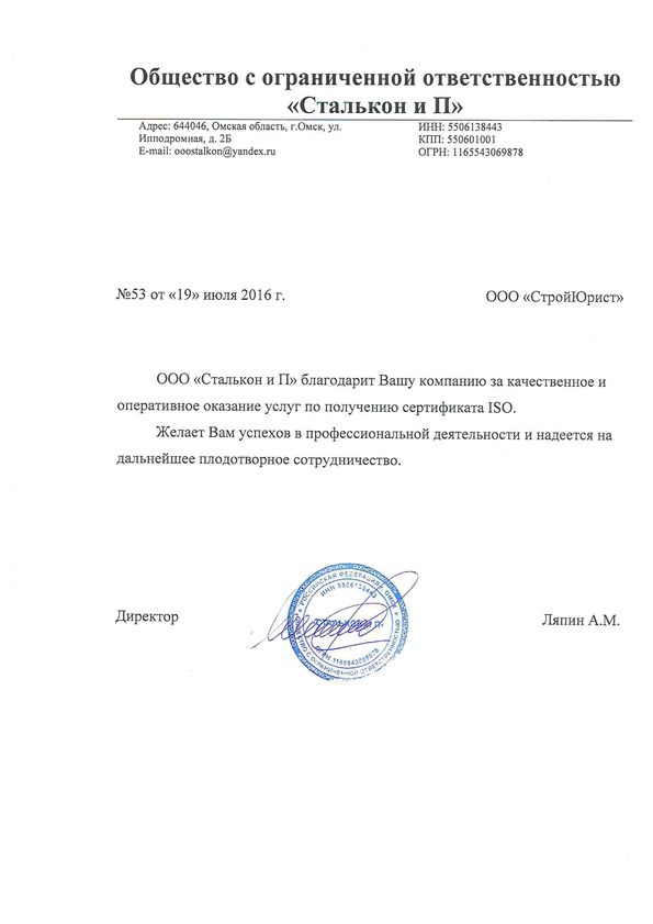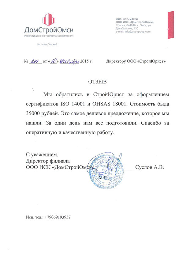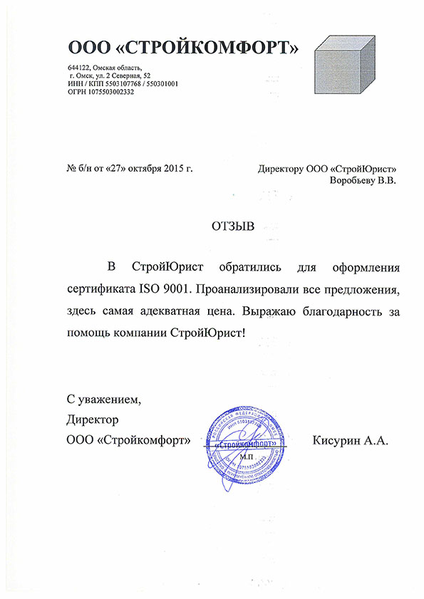 Отзывы клиентов "СтройЮрист" по ISO в Таганроге