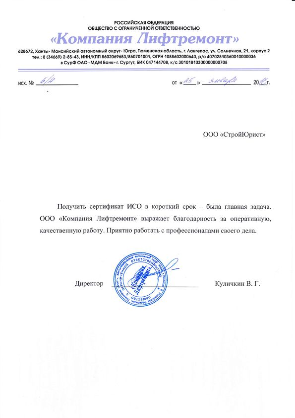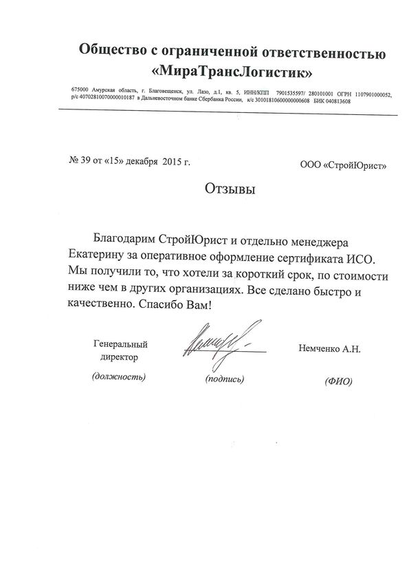 Отзывы клиентов "СтройЮрист" по ISO в Таганроге