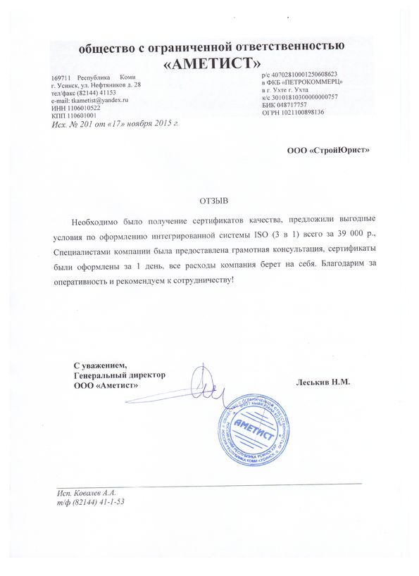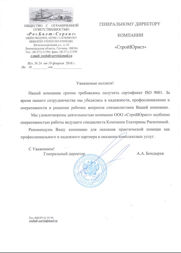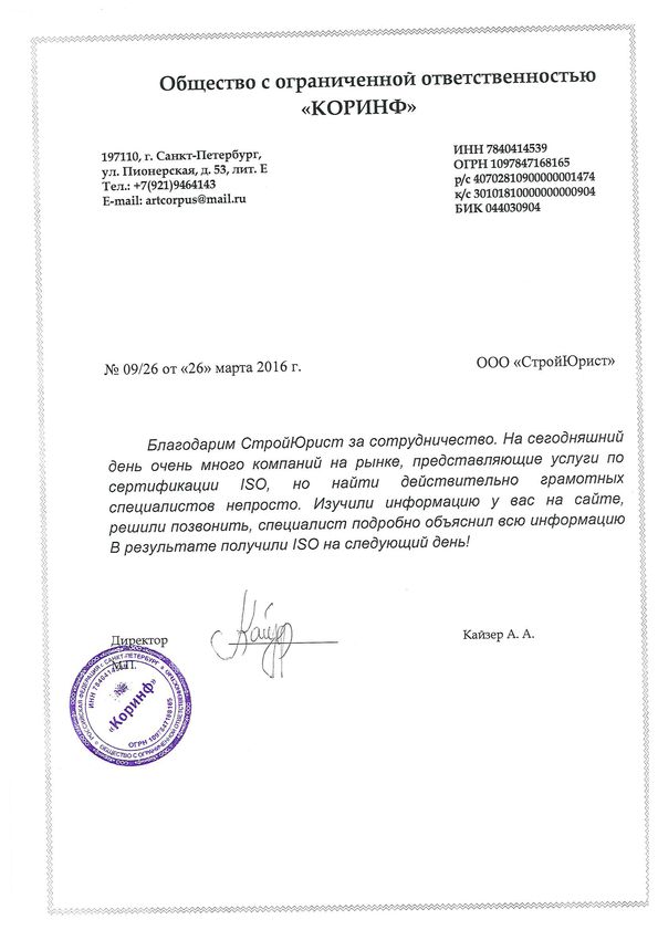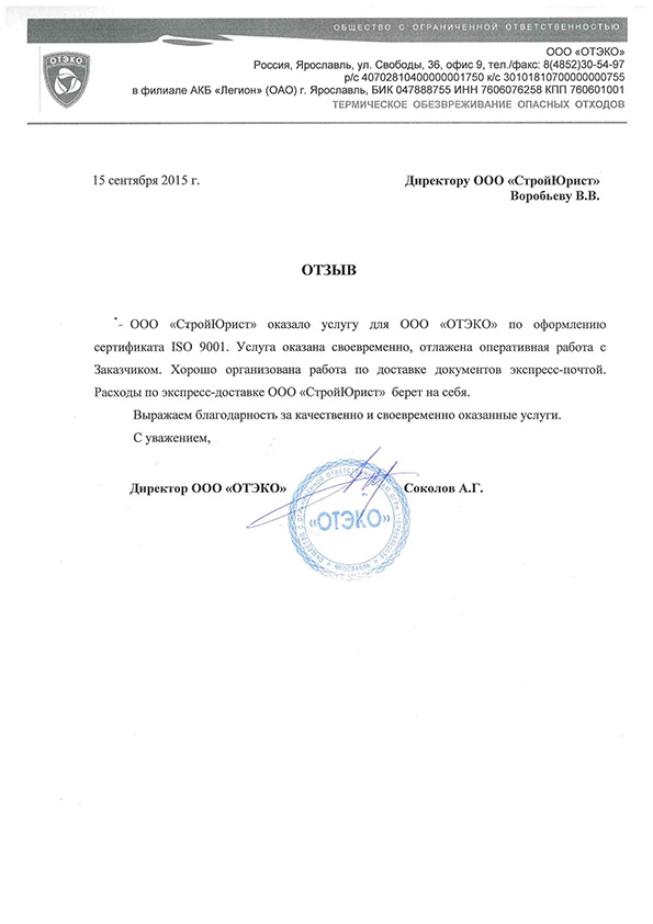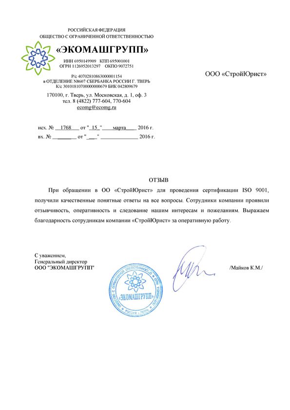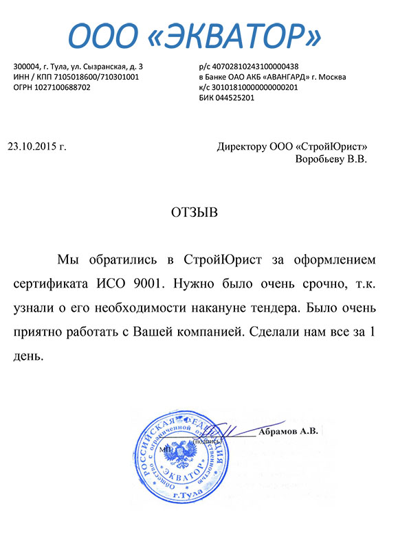 Отзывы клиентов "СтройЮрист" по ISO в Таганроге