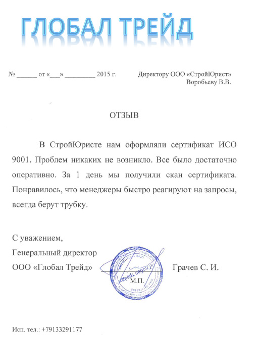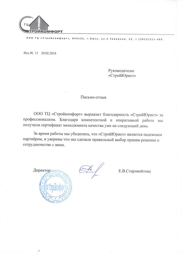 Отзывы клиентов "СтройЮрист" по ISO в Таганроге