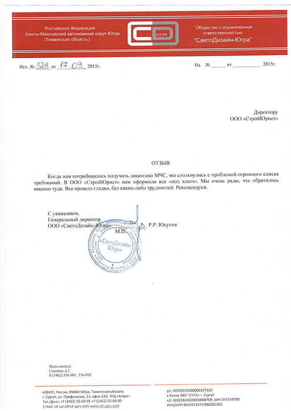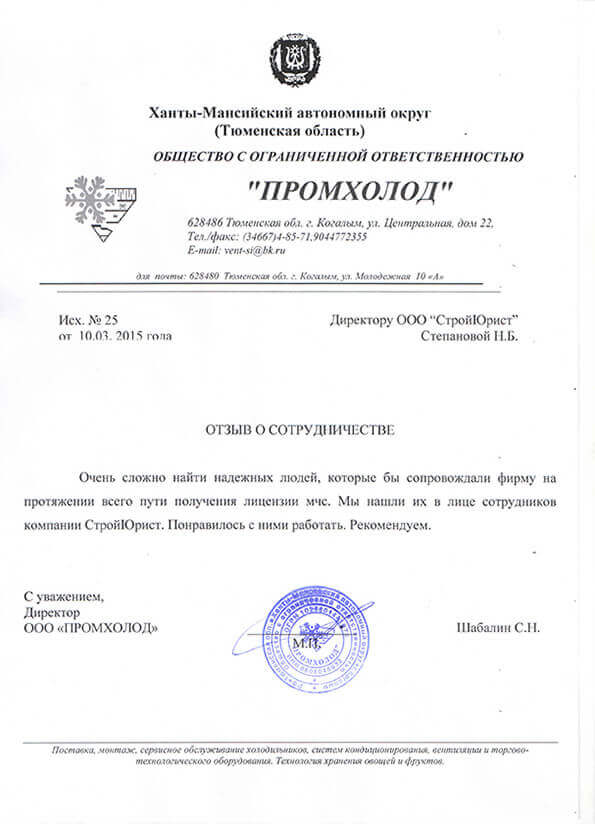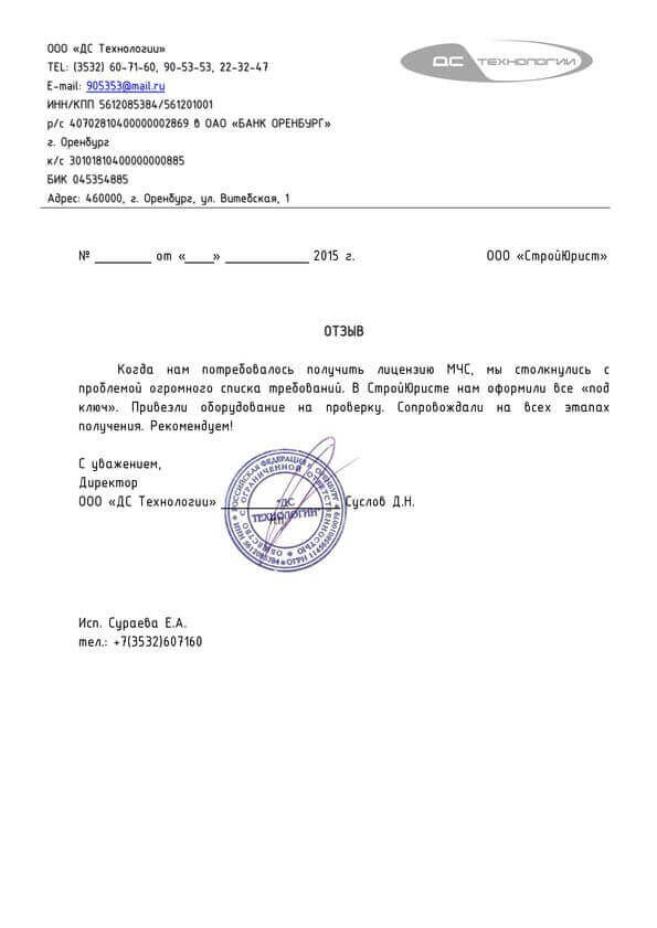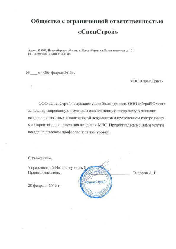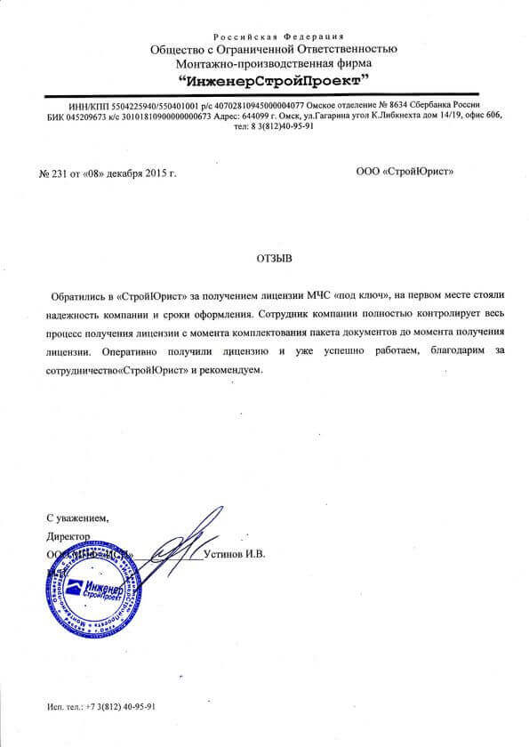 Отзывы клиентов "СтройЮрист" по лицензированию МЧС в Таганроге