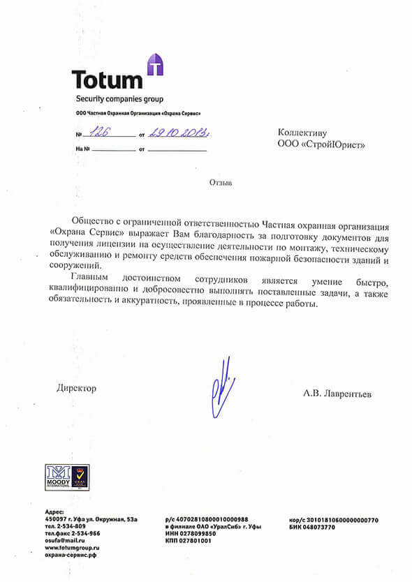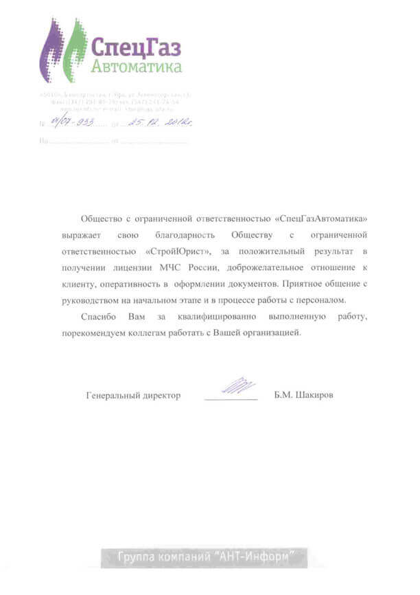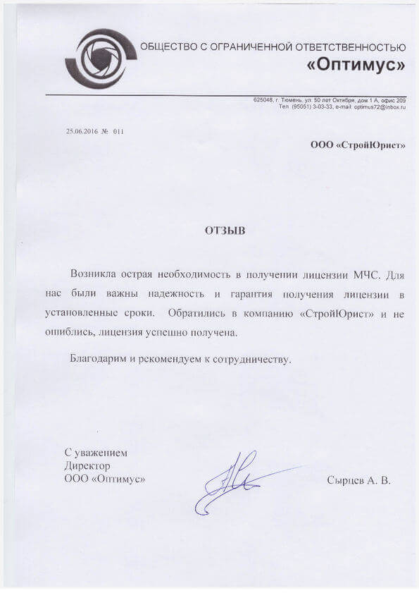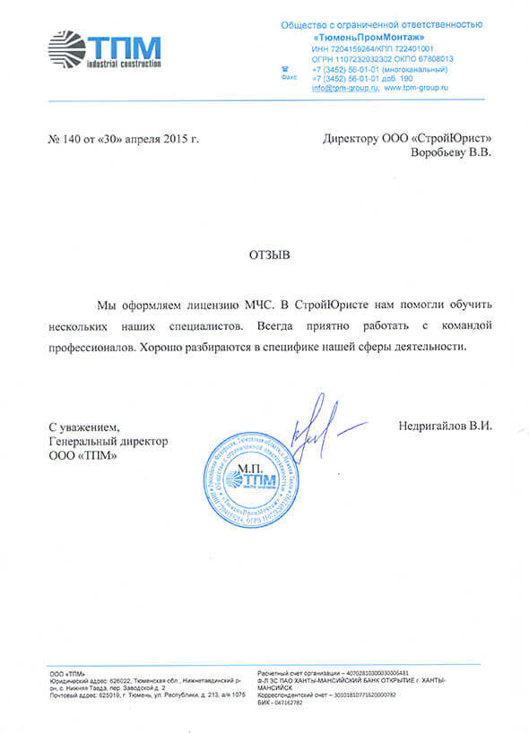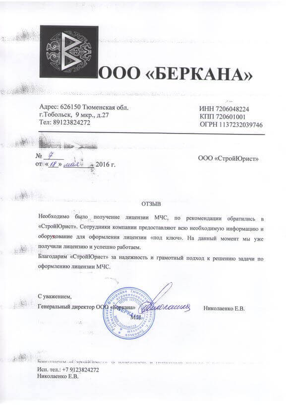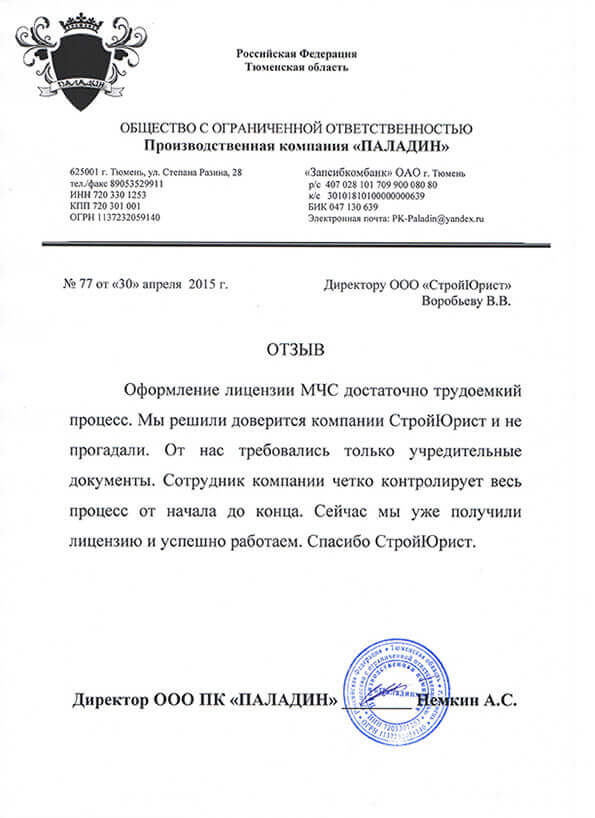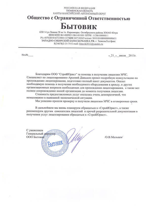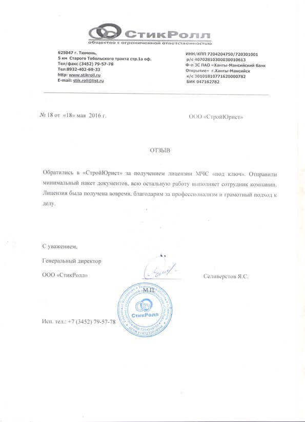 Отзывы клиентов "СтройЮрист" по лицензированию МЧС в Таганроге
