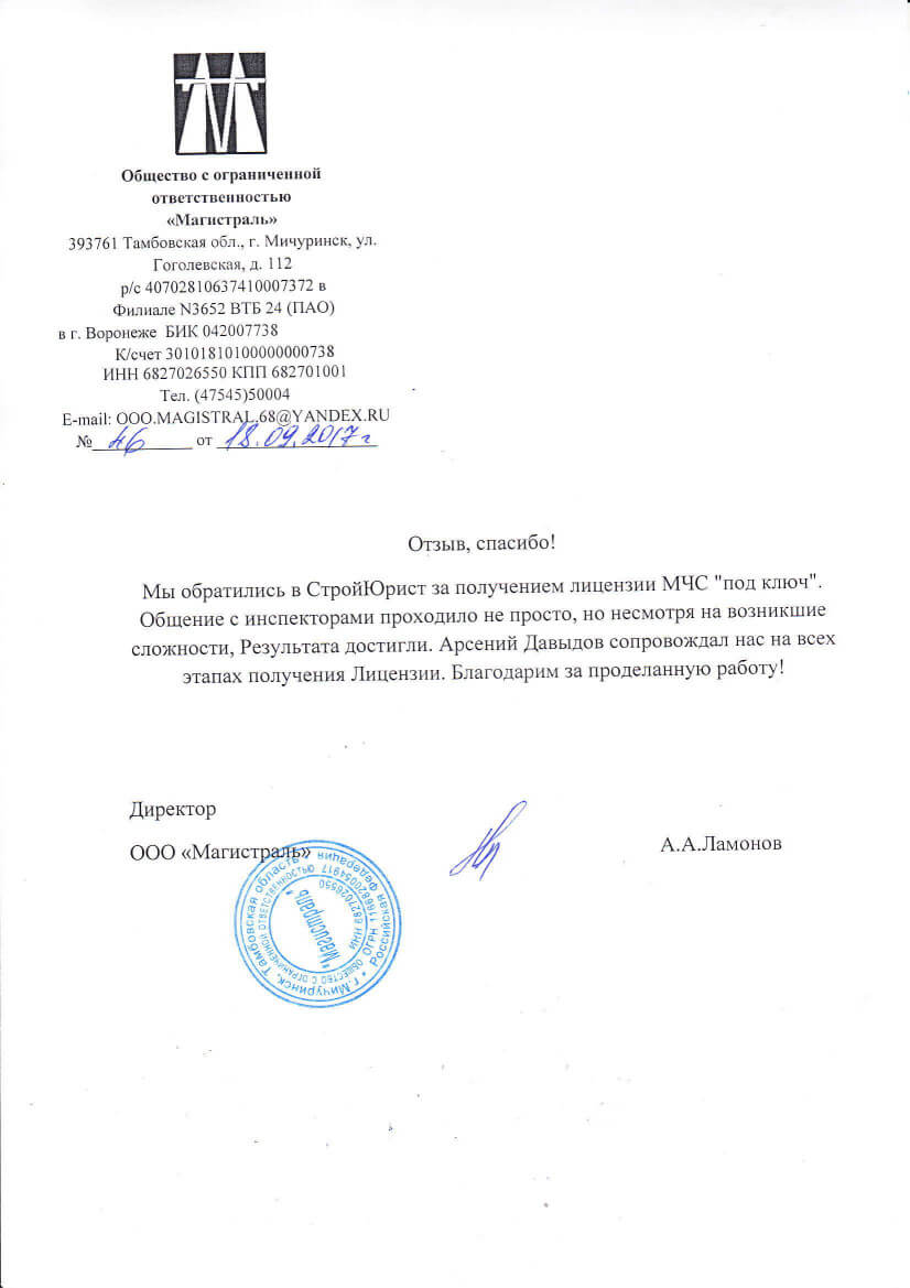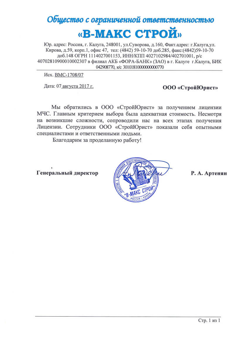 Отзывы клиентов "СтройЮрист" по лицензированию МЧС в Таганроге