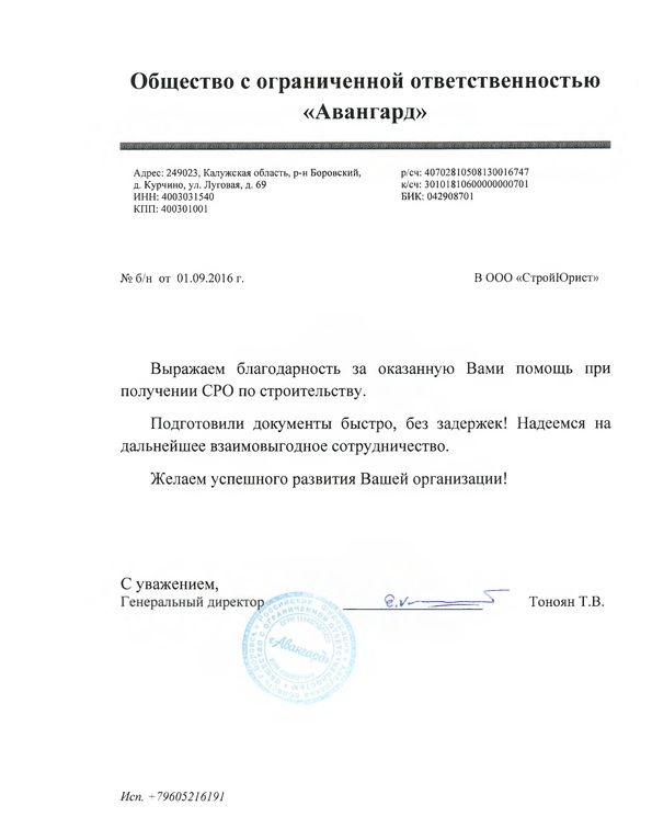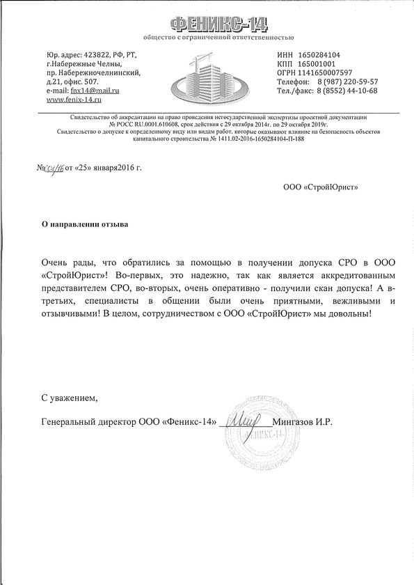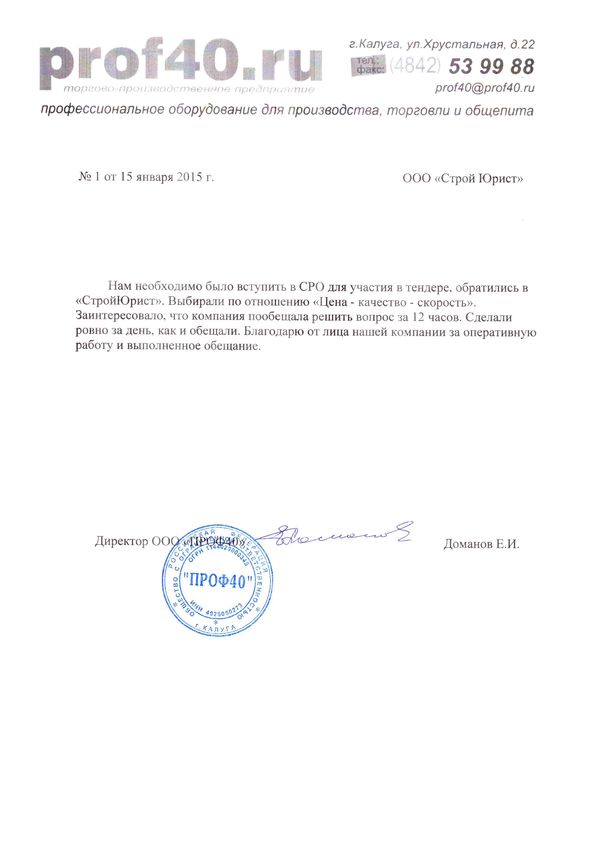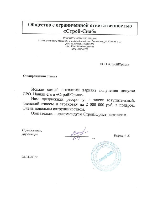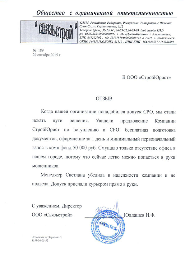 Отзывы клиентов "СтройЮрист" по вступлению в СРО в Таганроге