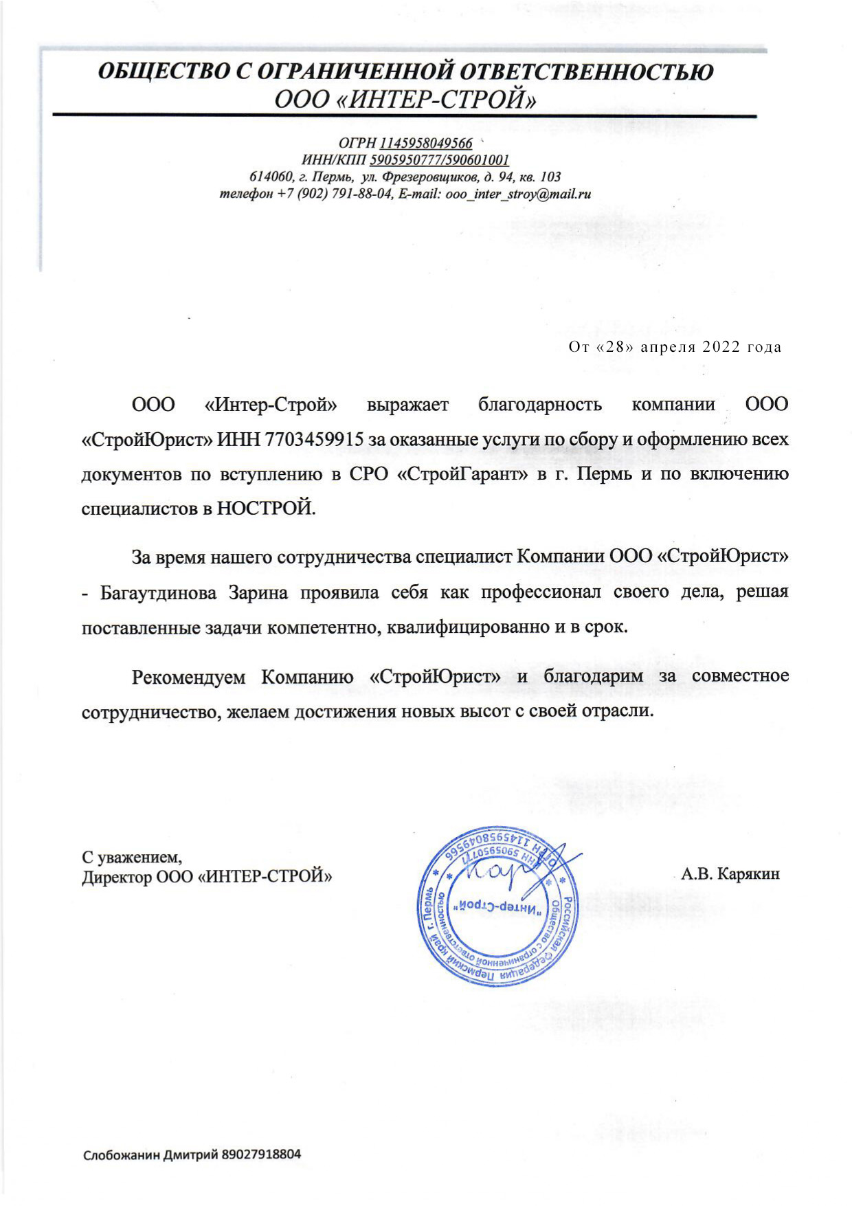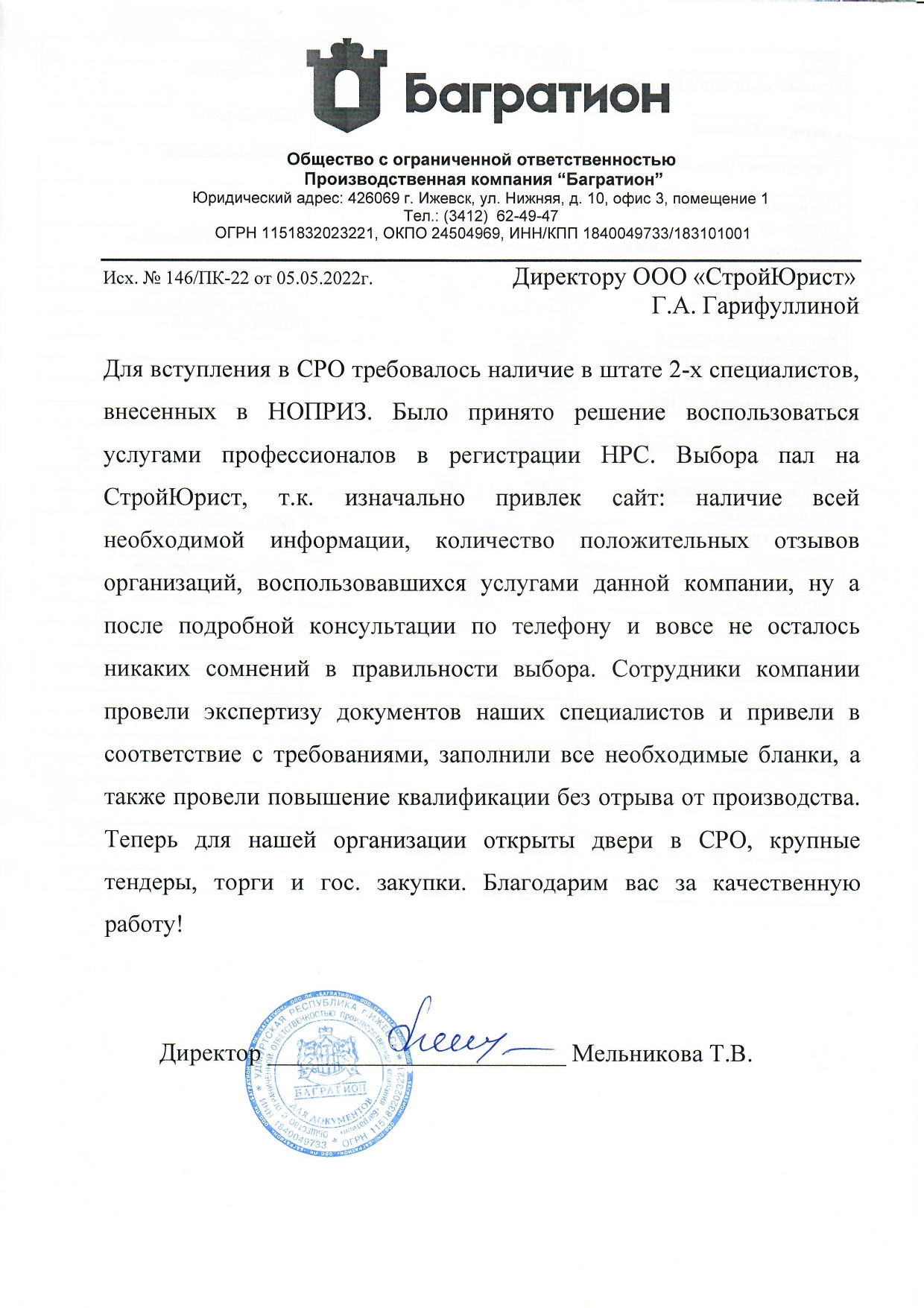 Отзывы клиентов "СтройЮрист" по вступлению в СРО в Таганроге