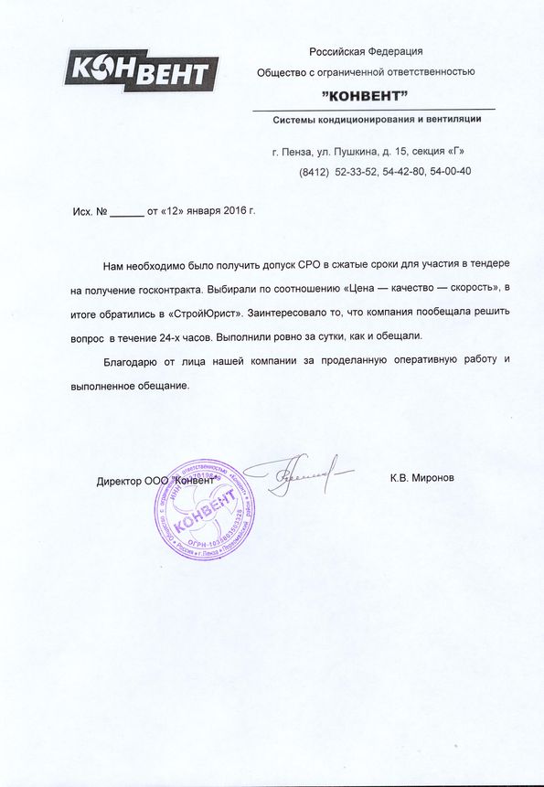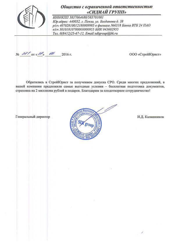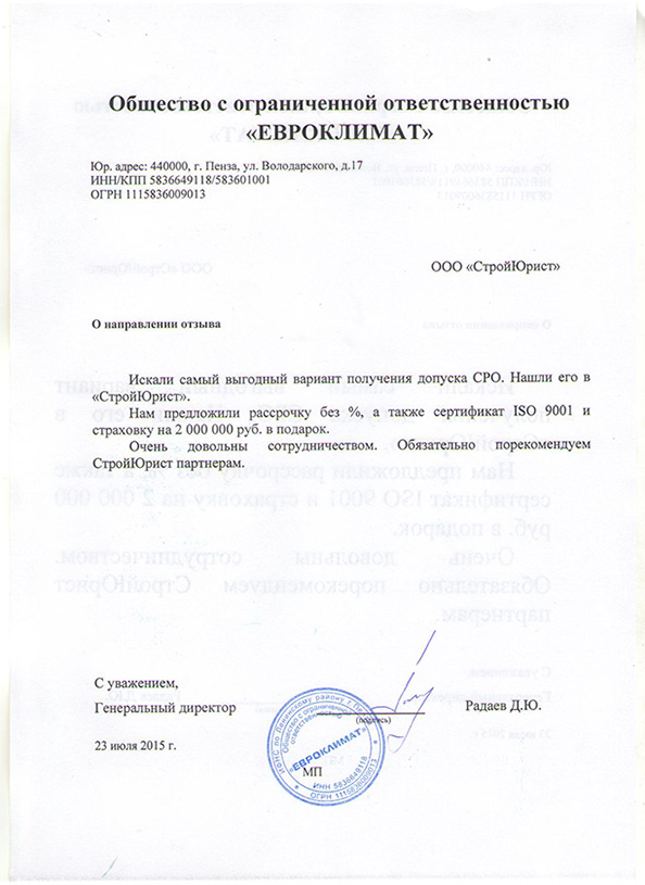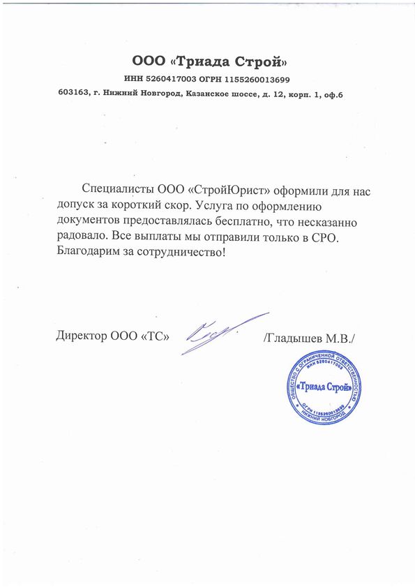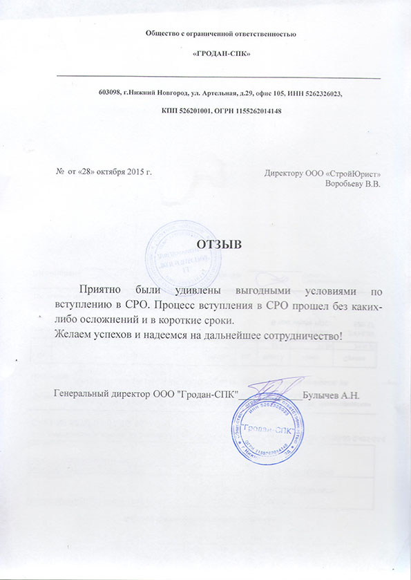 Отзывы клиентов "СтройЮрист" по вступлению в СРО в Таганроге