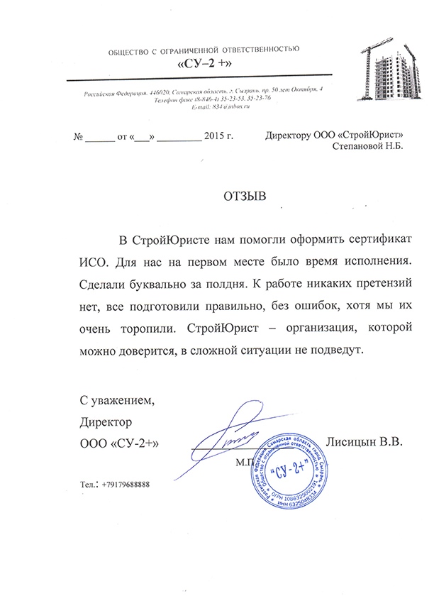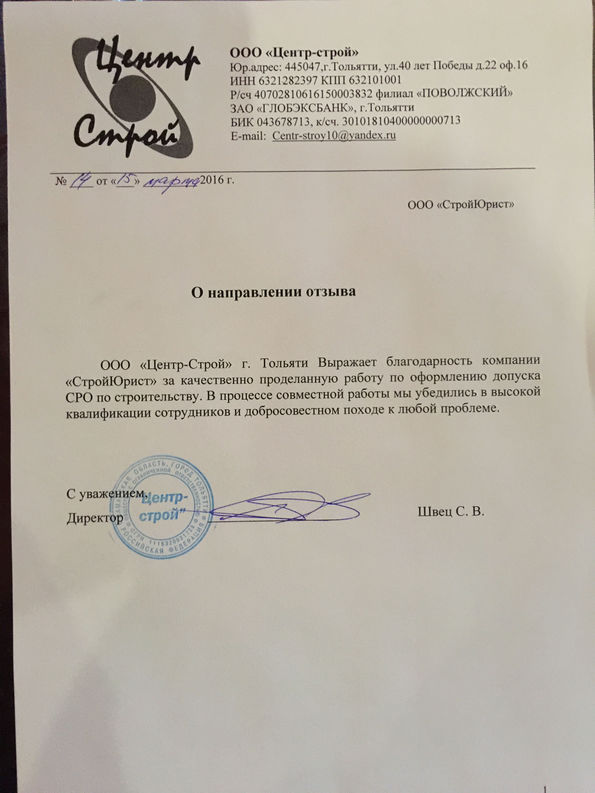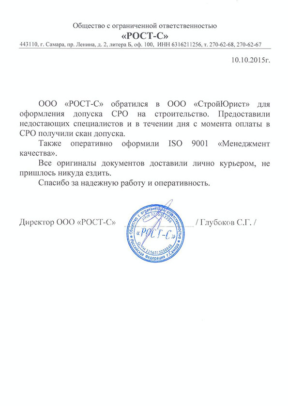 Отзывы клиентов "СтройЮрист" по вступлению в СРО в Таганроге