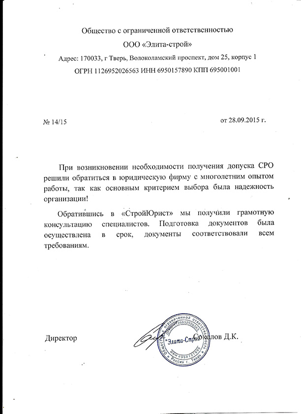 Отзывы клиентов "СтройЮрист" по вступлению в СРО в Таганроге