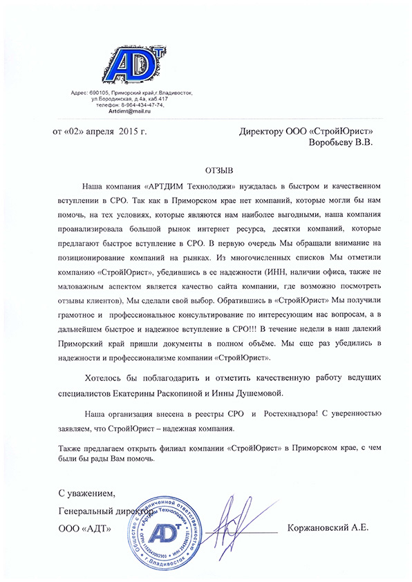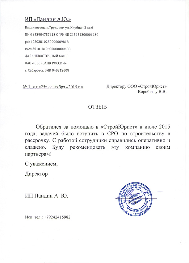 Отзывы клиентов "СтройЮрист" по вступлению в СРО в Таганроге
