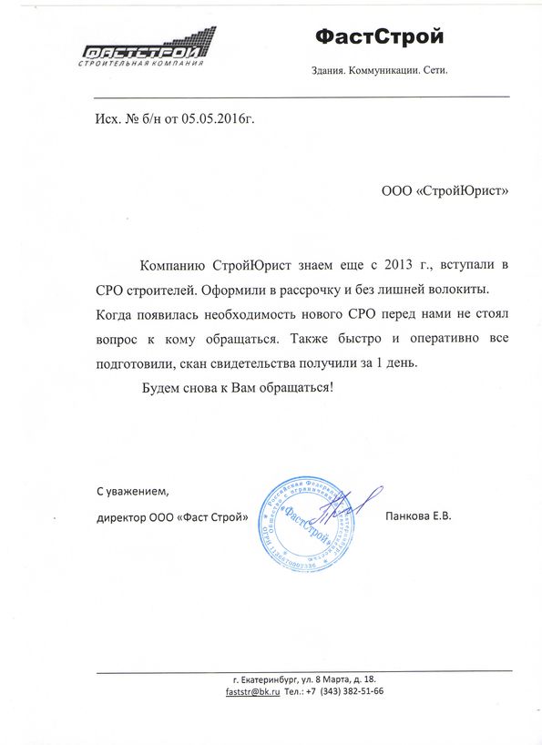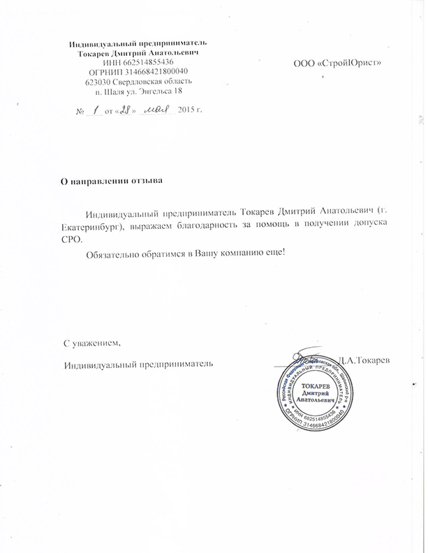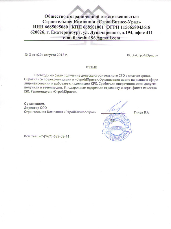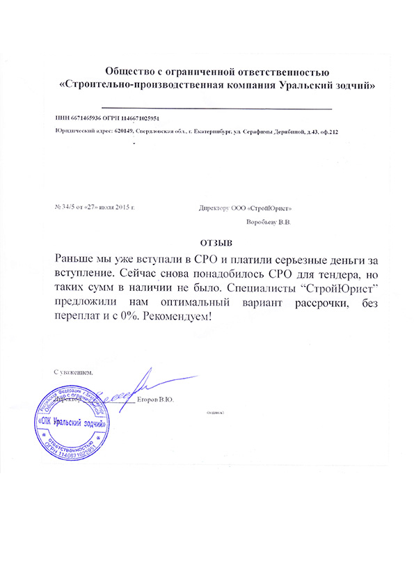 Отзывы клиентов "СтройЮрист" по вступлению в СРО в Таганроге