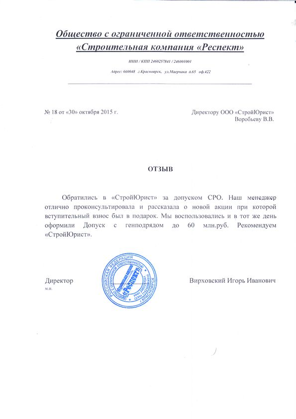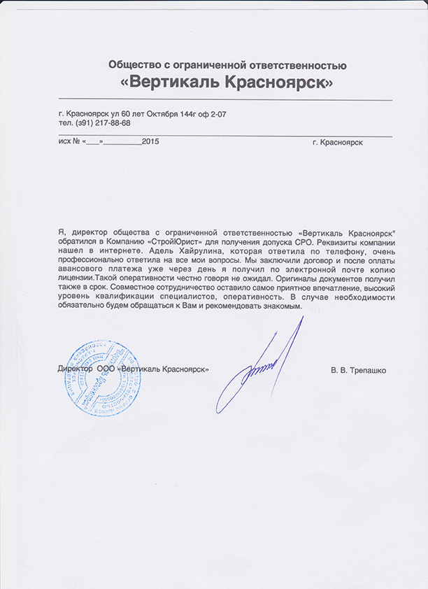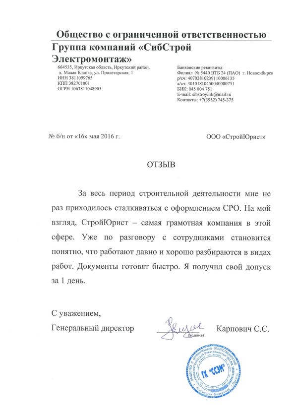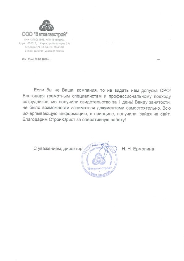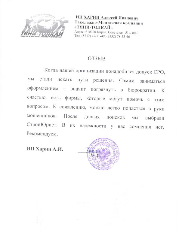 Отзывы клиентов "СтройЮрист" по вступлению в СРО в Таганроге