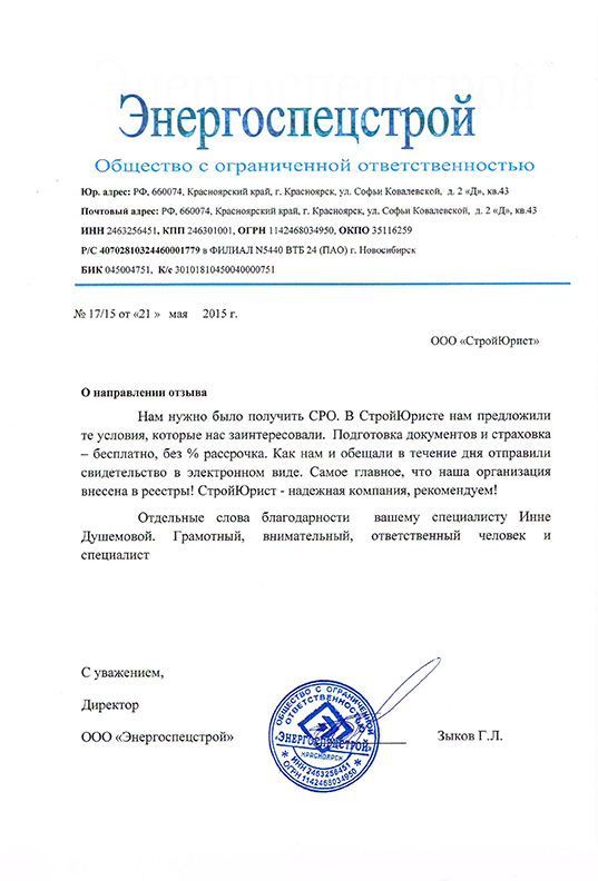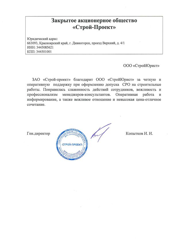 Отзывы клиентов "СтройЮрист" по вступлению в СРО в Таганроге