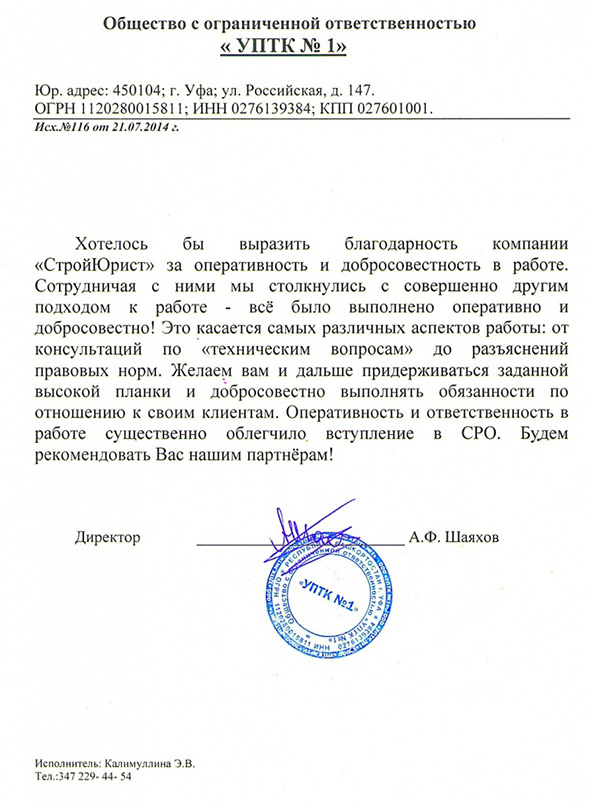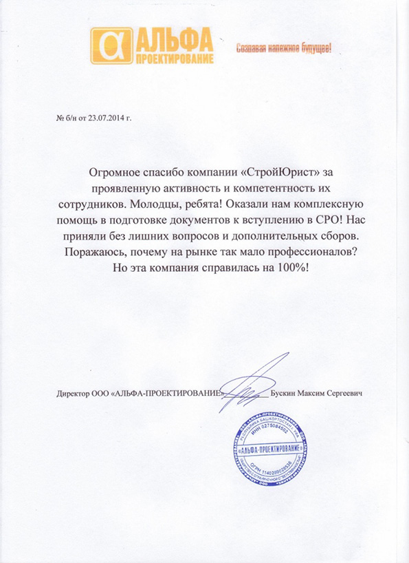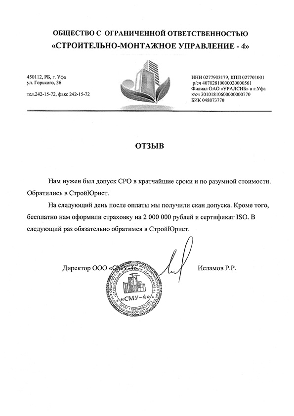 Отзывы клиентов "СтройЮрист" по вступлению в СРО в Таганроге