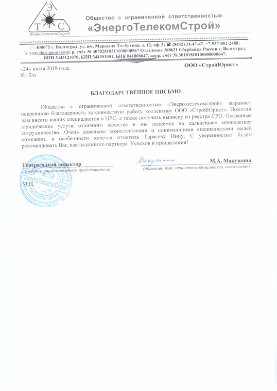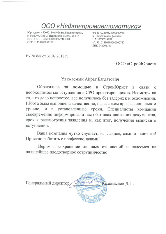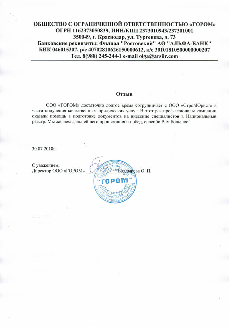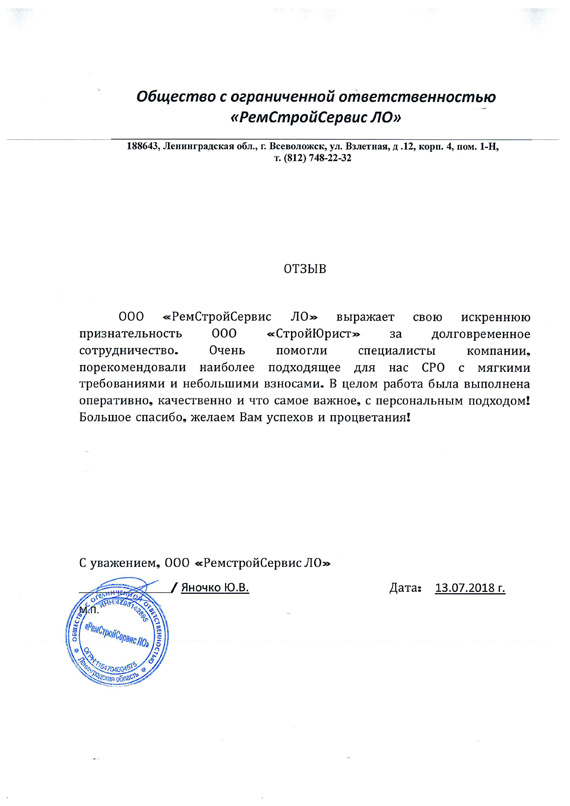 Отзывы клиентов "СтройЮрист" по вступлению в СРО в Таганроге