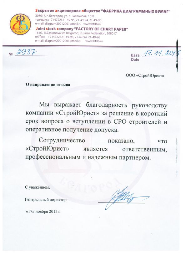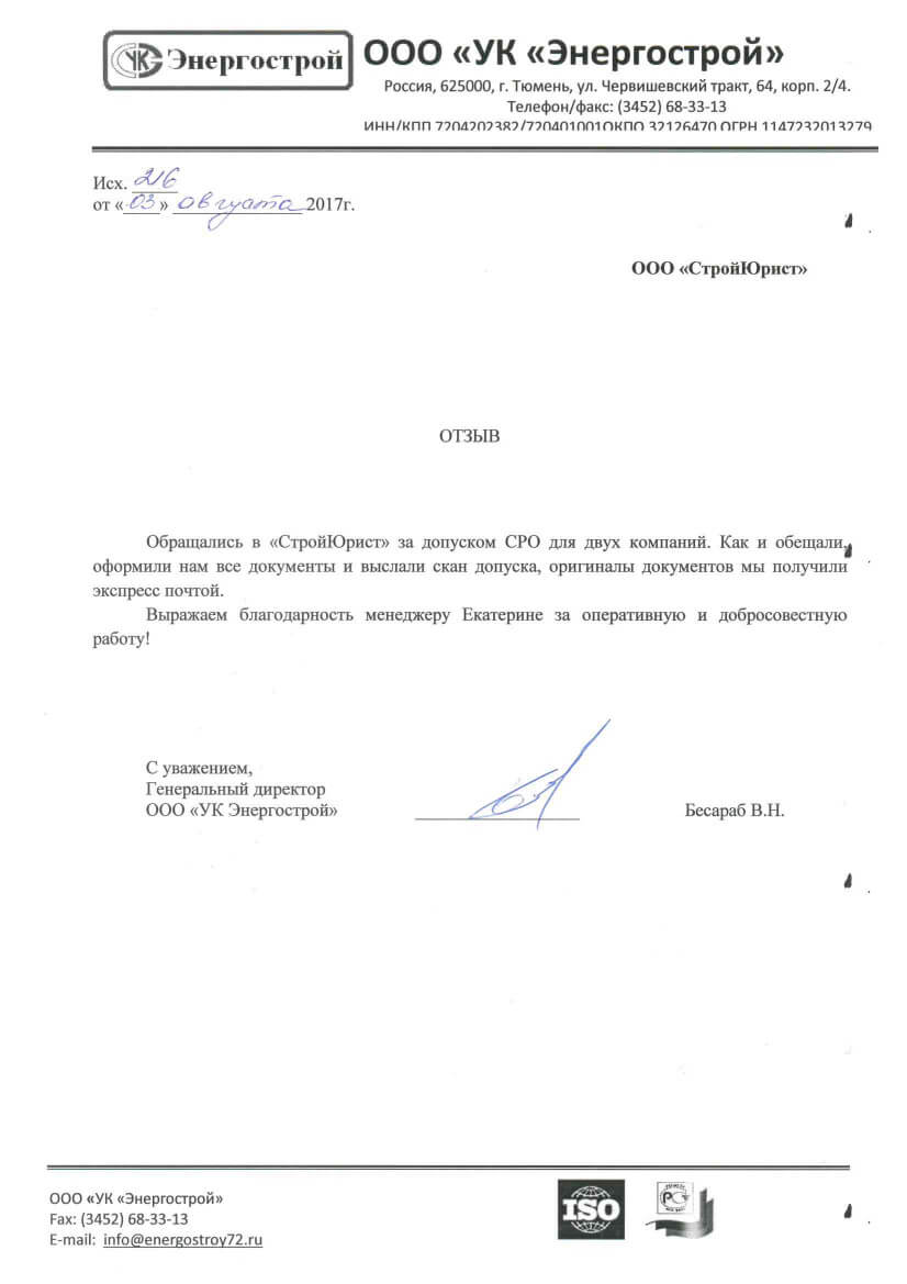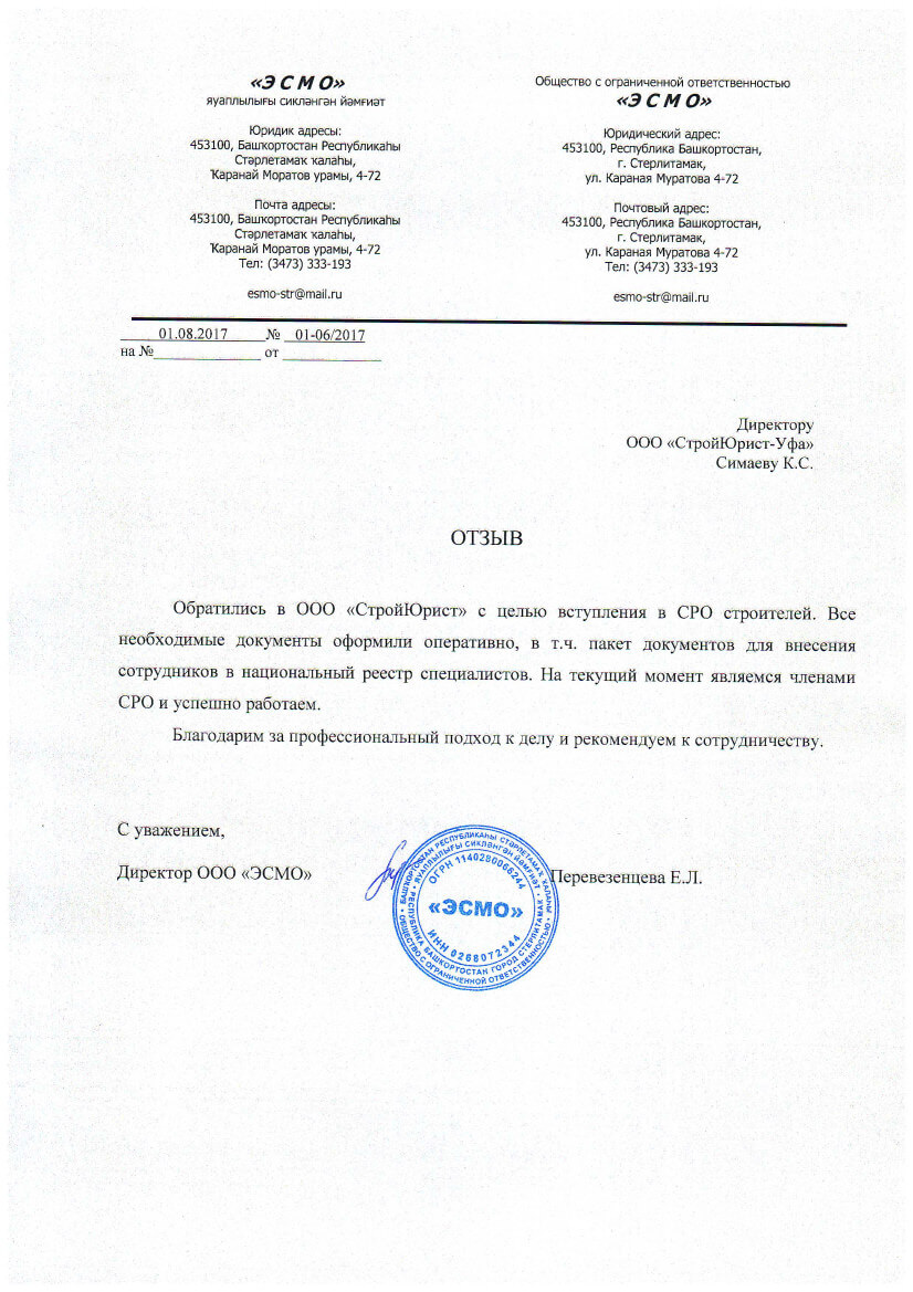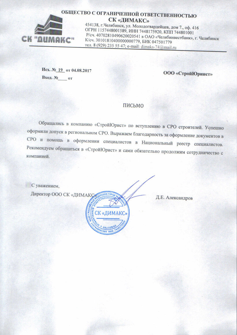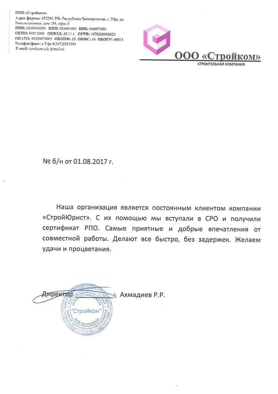 Отзывы клиентов "СтройЮрист" по вступлению в СРО в Таганроге